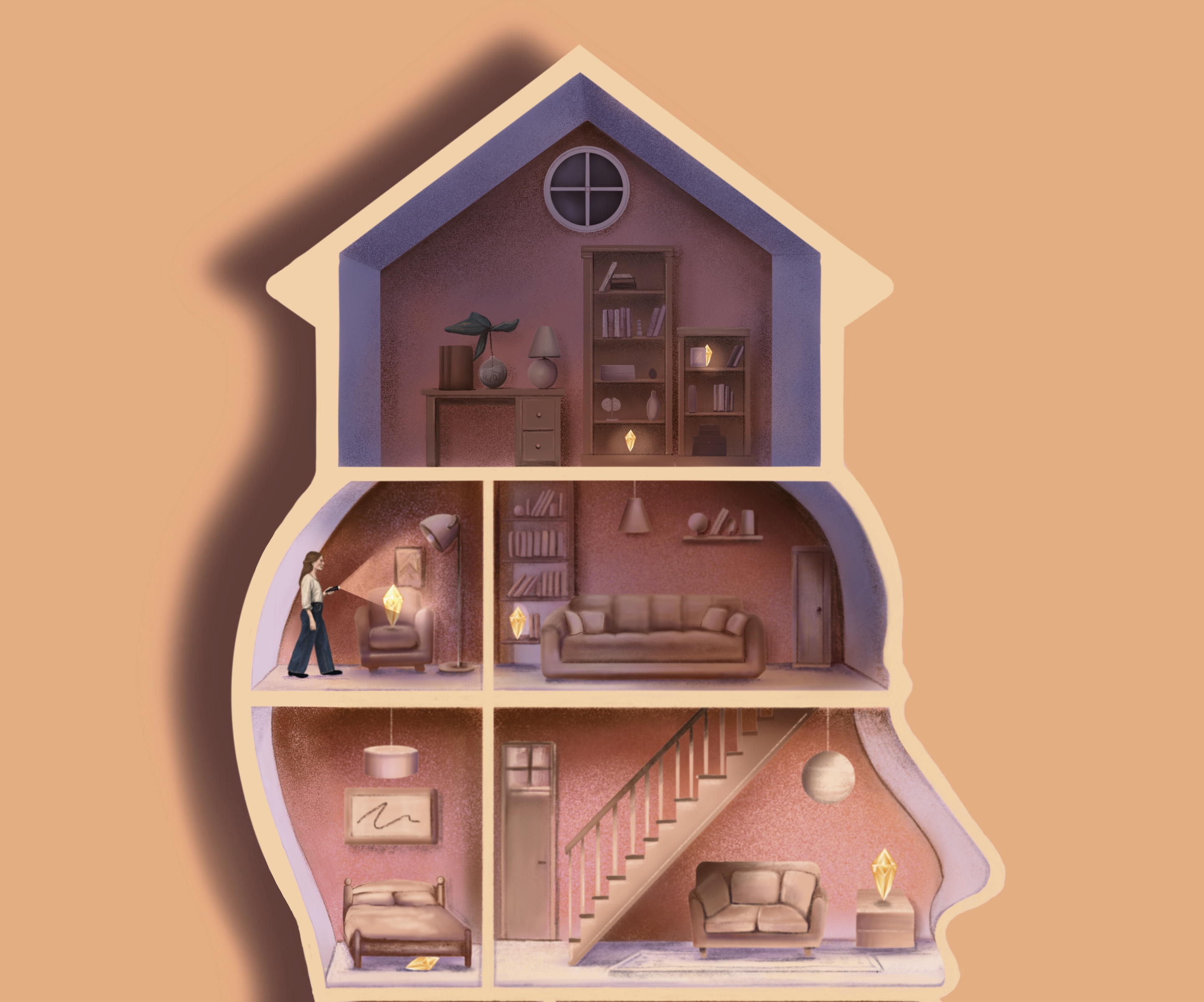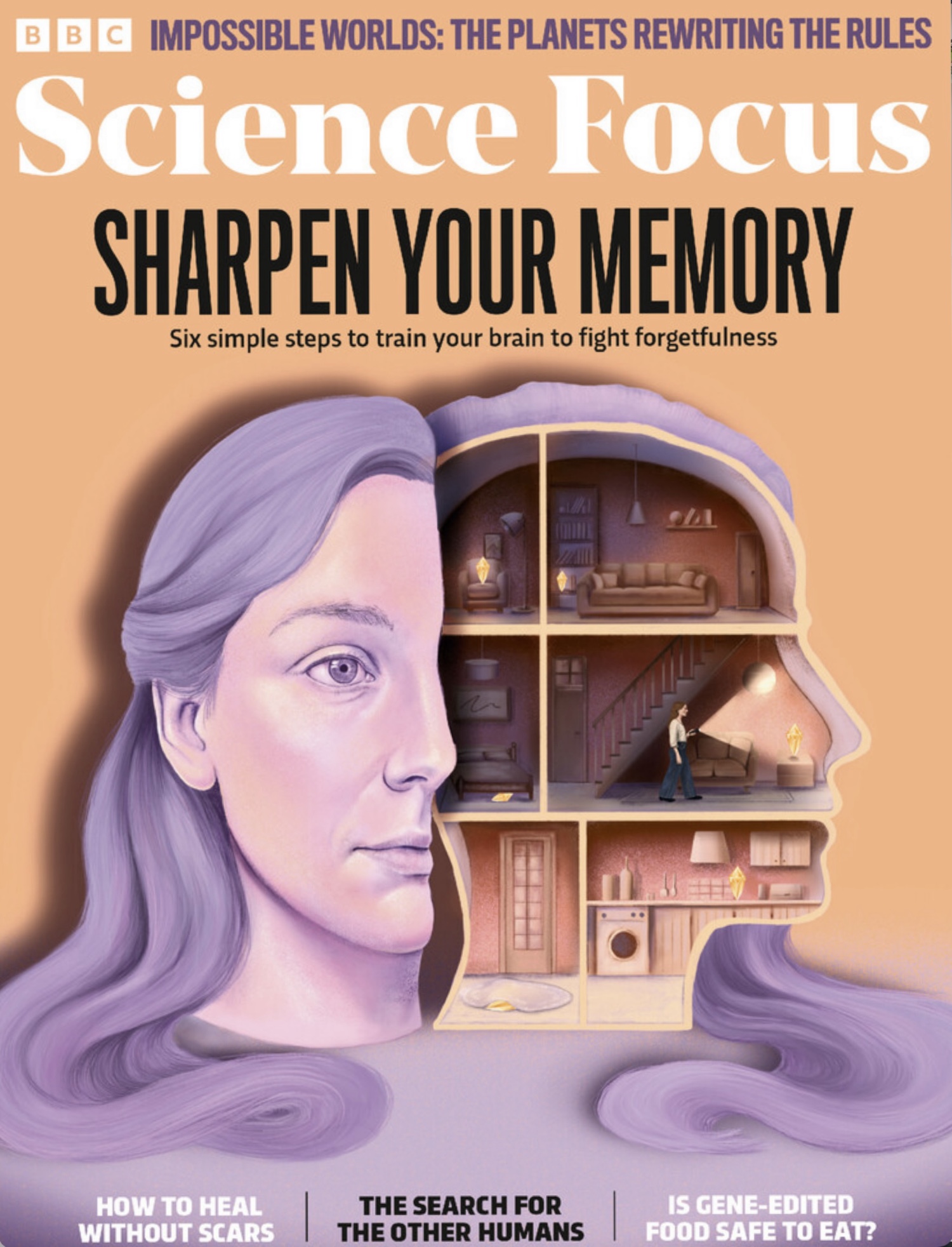 Cover and lead illustration on 6 ways to improve memory. The illustration depicted the memory palace technique.